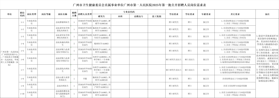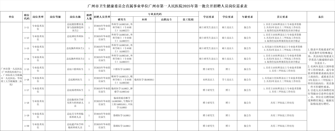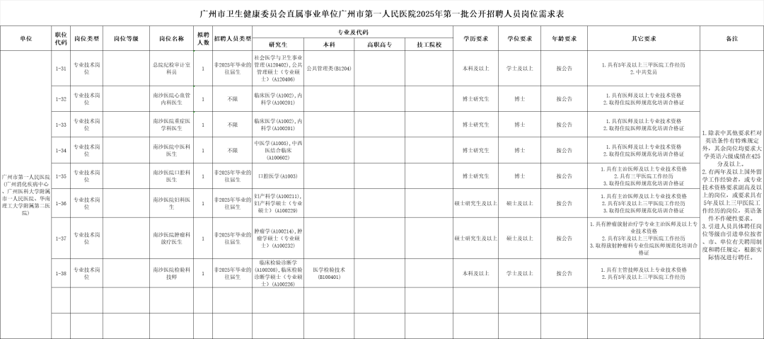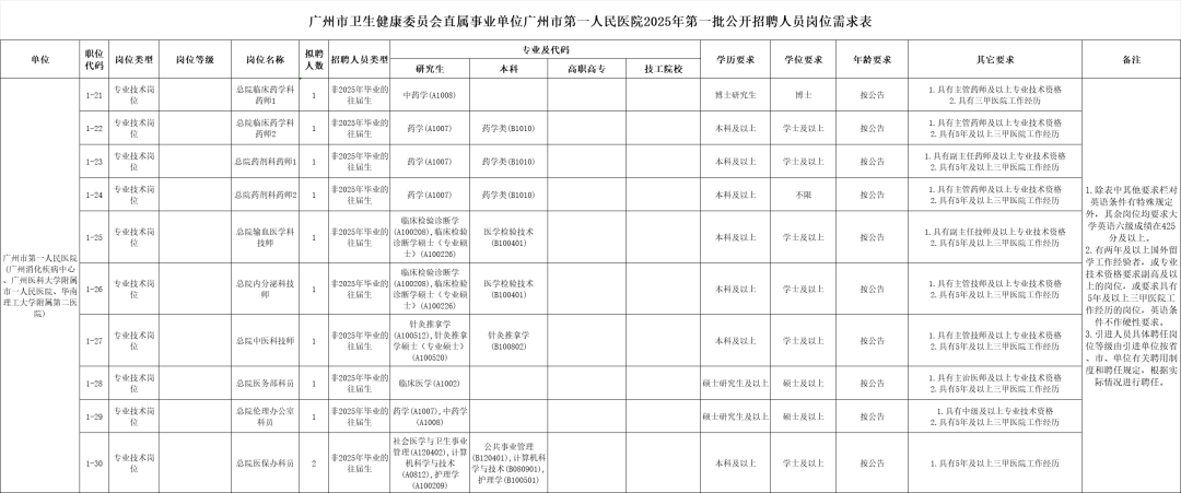 广州市卫生健康委员会直属事业单位广州市第一人民医院面向社会公开招聘41名工作人员。